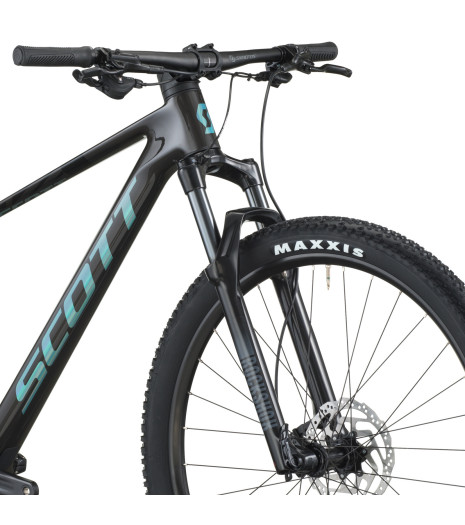 Rama z włókna węglowego HMF jest lekka i sztywna, a regulowany kąt główki oraz system Advanced Shock & Standing Damping pozwalają dopasować rower do stylu jazdy i warunków na trasie. Amortyzowany widelec RockShox Judy Silver TK Solo Air o skoku 110 mm skutecznie tłumi nierówności i korzenie, a zdalna blokada zawieszenia i sztycy SCOTT RideLoc umożliwia szybką zmianę ustawień podczas podjazdów i zjazdów bez odrywania rąk od kierownicy.