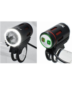 Lampka do roweru ProX Avior I to lampka o bardzo dużej mocy, która dzięki swojej uniwersalności i zaawansowanej konstrukcji, może służyć również jako lampka czołowa. Głównym źródłem światła jest potężna dioda CREE XM-L2 U2, która daje jasny strumień światła o mocy 1000 Lumenów. Taka moc zapewni Ci doskonałą widoczność nawet w środku nocy. W lampie zaprogramowano 4 tryby świecenia: max (100%), na którym świeci do 3 godzin, mid (30%) do 7 godzin, min (10%) do 10 godzin i migający, na którym czas świecenia wynosi do 5 godzin. Warto także zaznaczyć, że lampka rowerowa ProX Avior I posiada dodatkowe diody led, ułożone w kształt ringu, które służą do jazdy dziennej, pracujące w dwóch trybach - stałym i migającym. Z tyłu umieszczono dwa przyciski, za pomocą których można wybrać, czy świecić ma dioda główna czy ring.