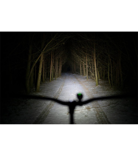 Maksymalna moc świecenia wynosi aż 900 lumenów, co w zupełności wystarczy nie tylko do wieczornej jazdy po mieście, ale daje także możliwość nocnej aktywności w lesie i na innych terenach pozbawionych dodatkowych źródeł światła.