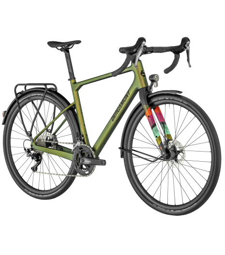Bergamont Grandurance RD Elite to wyjątkowy rower typu "all-road", który łączy w sobie cechy wyczynowego gravela z funkcjonalnością roweru wyprawowego i miejskiego. Sercem konstrukcji jest ultralekka rama wykonana z wysokiej klasy włókna węglowego (HSC Carbon), która charakteryzuje się nie tylko niską masą, ale także dużą sztywnością i zdolnością do tłumienia drgań. Geometria ramy została zaprojektowana w sposób zrównoważony, co zapewnia komfort podczas wielogodzinnych wypraw, nie tracąc przy tym sportowego charakteru i zwrotności niezbędnej w trudniejszym terenie.