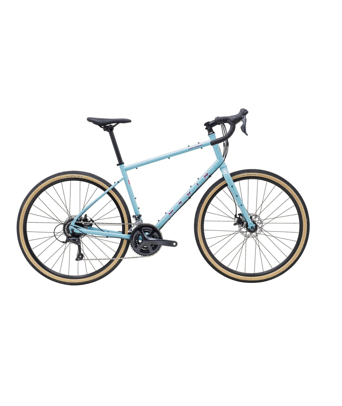 Rower wyposażono w solidne koła na obręczach Marin Aluminum Double Wall, przystosowanych do tarczowych hamulców, z oponami Vee Tire Co. GPVee o szerokości 40 mm, które oferują świetną przyczepność zarówno na asfaltowych drogach, jak i na żwirze.